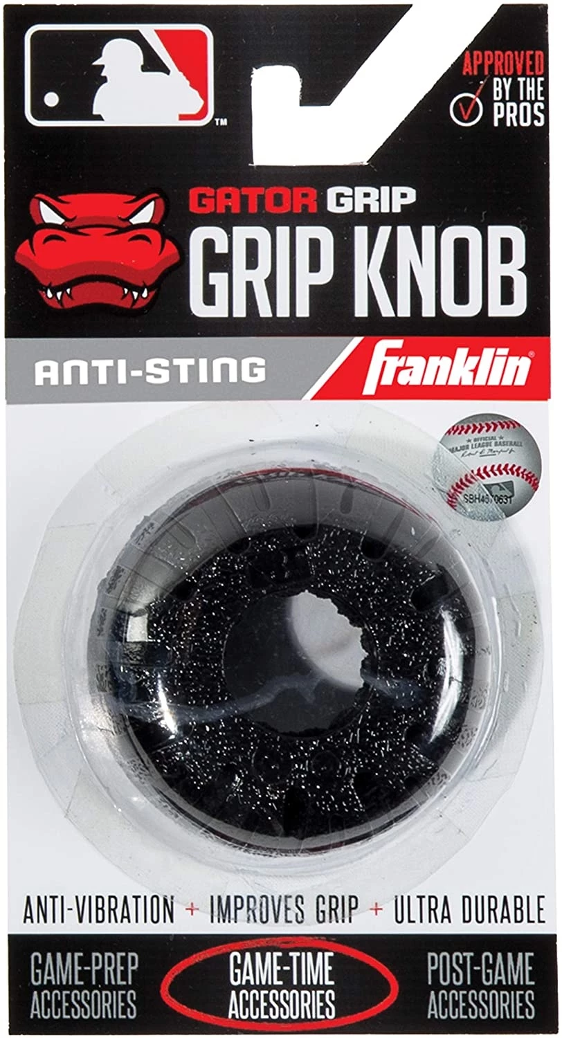 Reduce the sting of bat vibration with Franklin Sports MLB Gator Grip Knob! Ultra-durable and flexible silicon construction absorbs shock after contact to help eliminate hand sting while also improving your grip on the bat handle.Â
