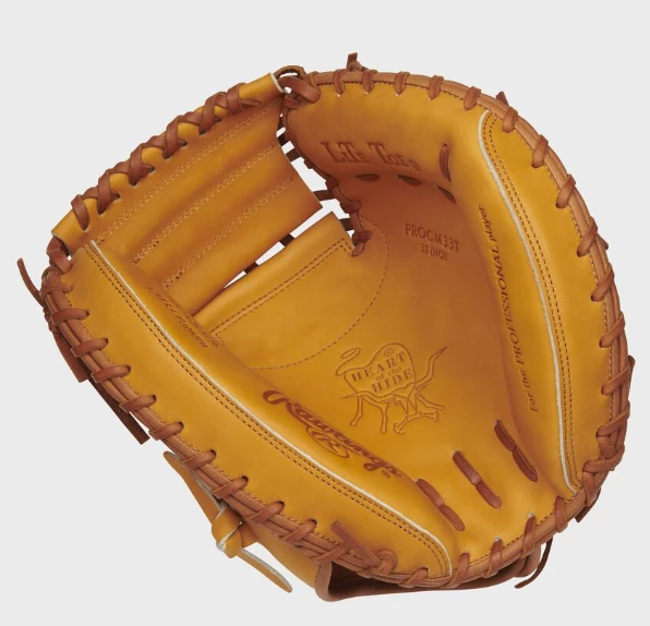 In addition, this Heart of the Hide catcher’s mitt features a deer-tanned cowhide lining, padded thumb sleeve, and thermoformed wrist lining to keep you comfortable every inning out. This 33-inch mitt was constructed in our CM33-pattern, which offers a perfect pocket. Its tan color-way is also perfect for players that want a great, classic looking mitt too. Boost your confidence with every pitch, and reach all-star status this season.Â